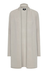 Ingrid Cardigan er 86 cm lang fra øverste skulderpunkt til nederste kant. (stl. S:84 cm, L:88 cm og XL:89 cm)