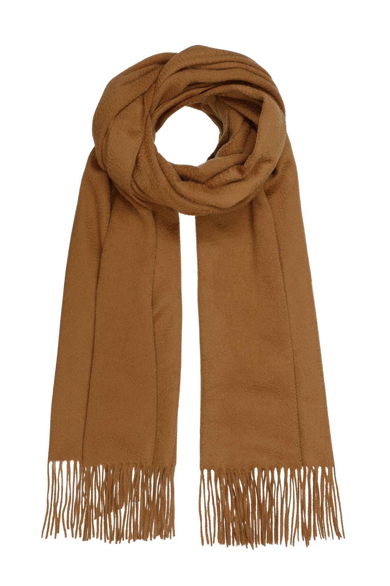 Lækkert, klassisk og meget blødt vævet cashmere halstørklæde med lange frynser i enderne.