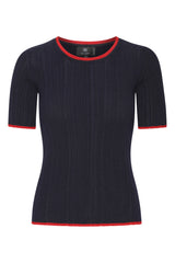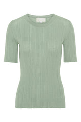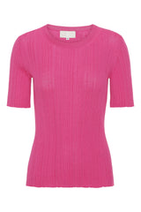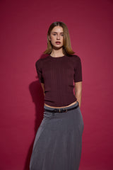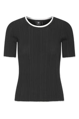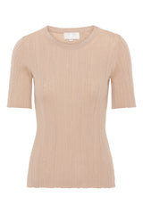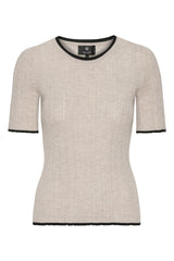 T-shirten har en fin unik 3D ribstruktur. Den er strikket i 97 % superior kashmir, 2% viskose og 1% polyamid, hvilket gør, at den holder formen under brug.