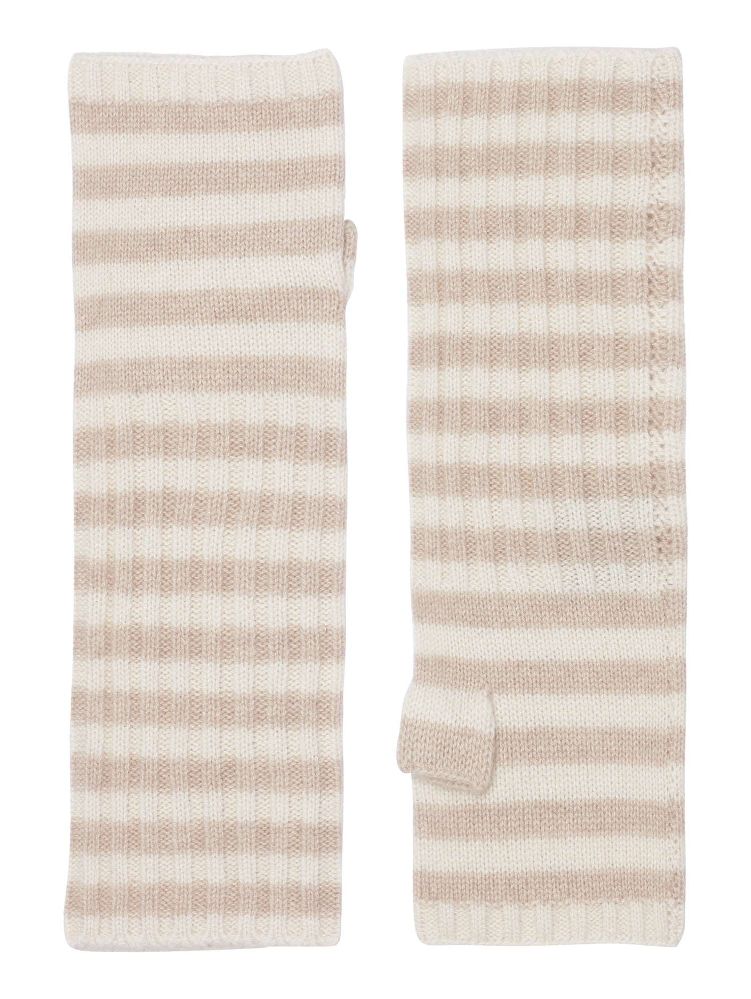 Robin - håndledsvarmere (fingerløse vanter) i strikket cashmere - Beige og Cremehvid