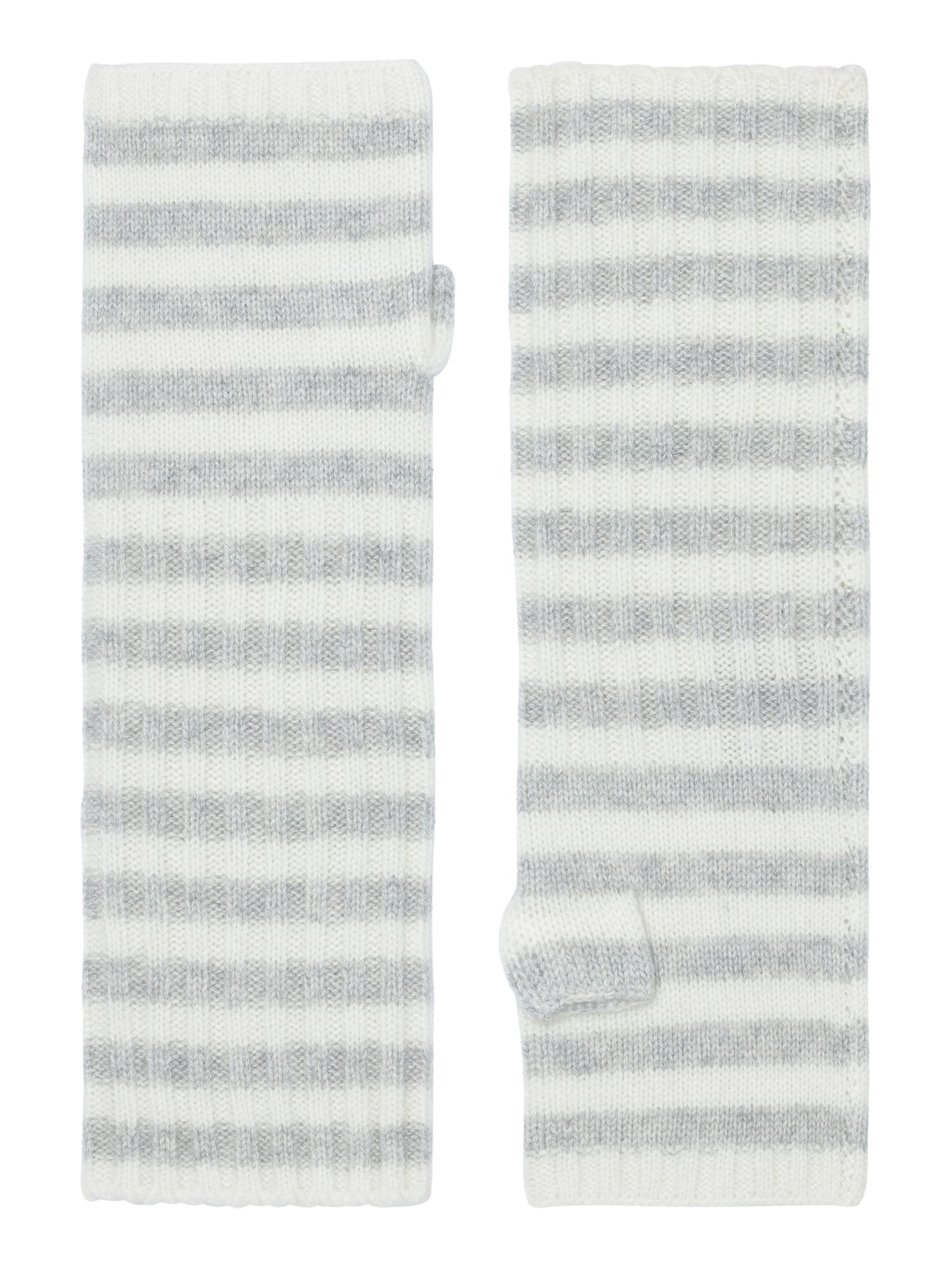 Robin - håndledsvarmere (fingerløse vanter) i strikket cashmere - Lysegrå og Hvid