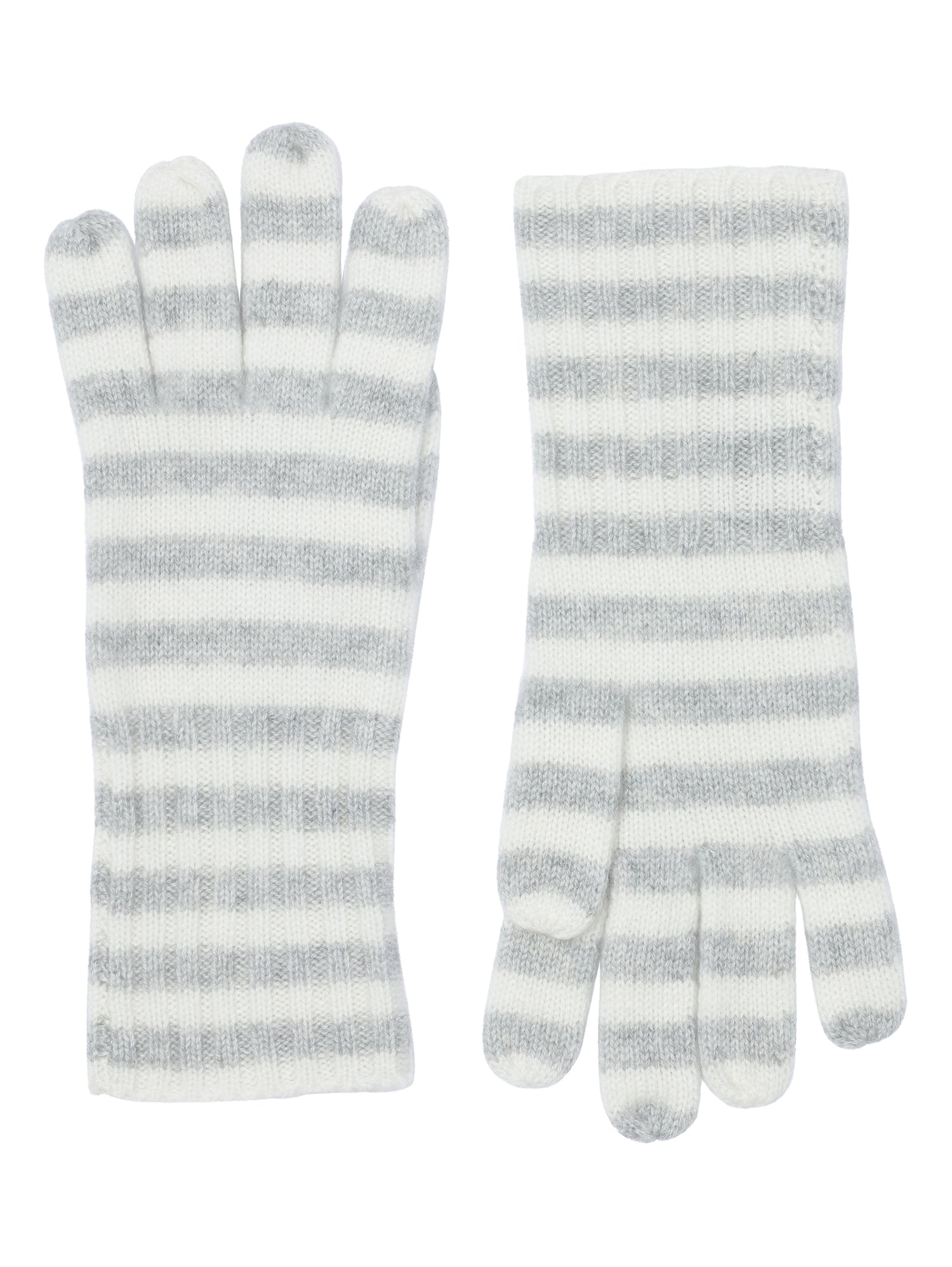 Robin - Handsker med striber i strikket cashmere - Lysegrå og Hvid